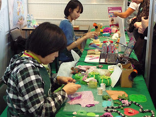 Еще тут были японцы из Clover, показывали искусство валяния и канзаши. Это все фигня, не фигня – шикарный нитковдеватель. Сунул специальную иголку ушком вниз, положил нитку, кнопочку нажал – оп-ля! – нитка в иголке! Сами японцы говорят, что с DMC этот фокус не пройдет, но на слово нас в МИФИ учили не верить. Буду искать способ убедиться лично ;)